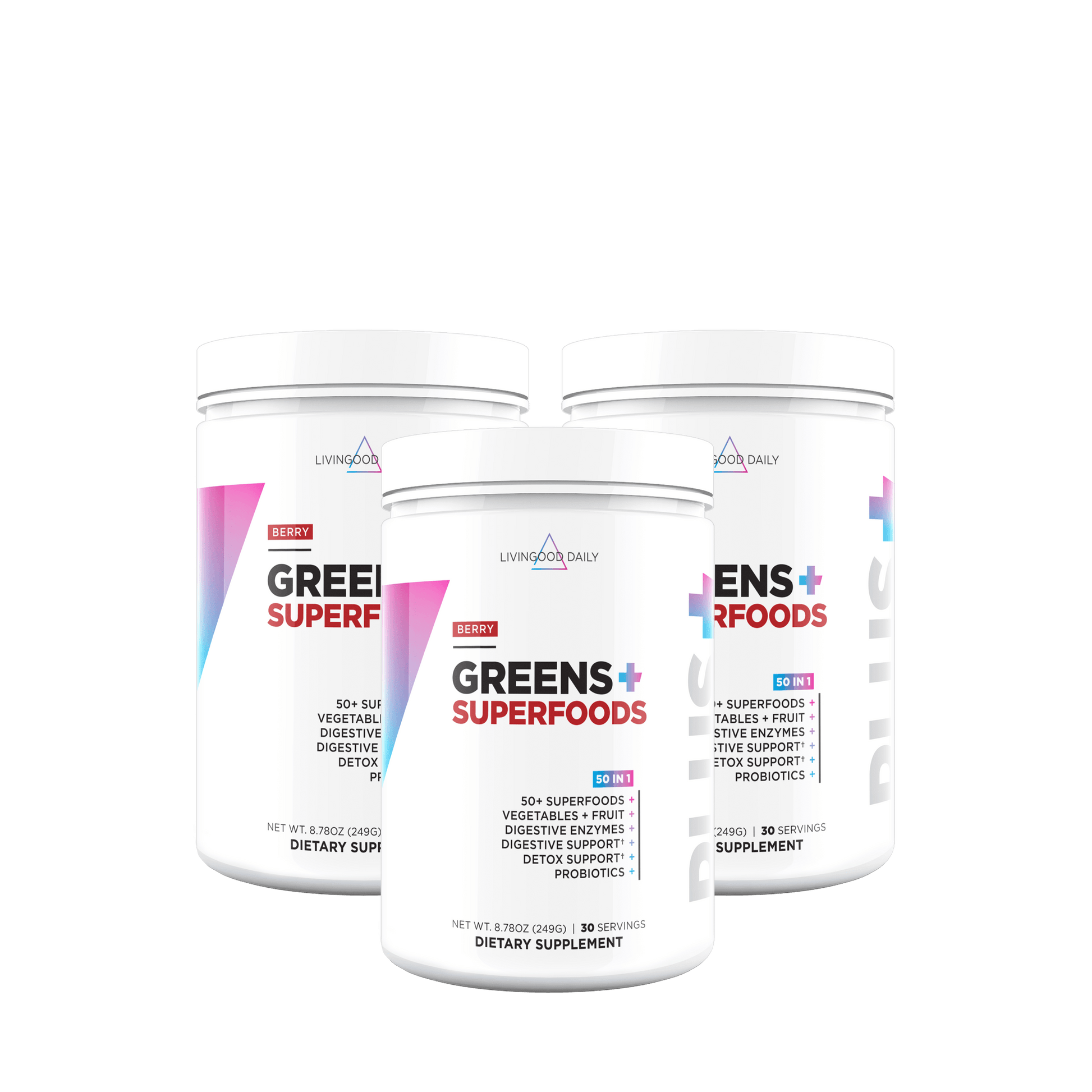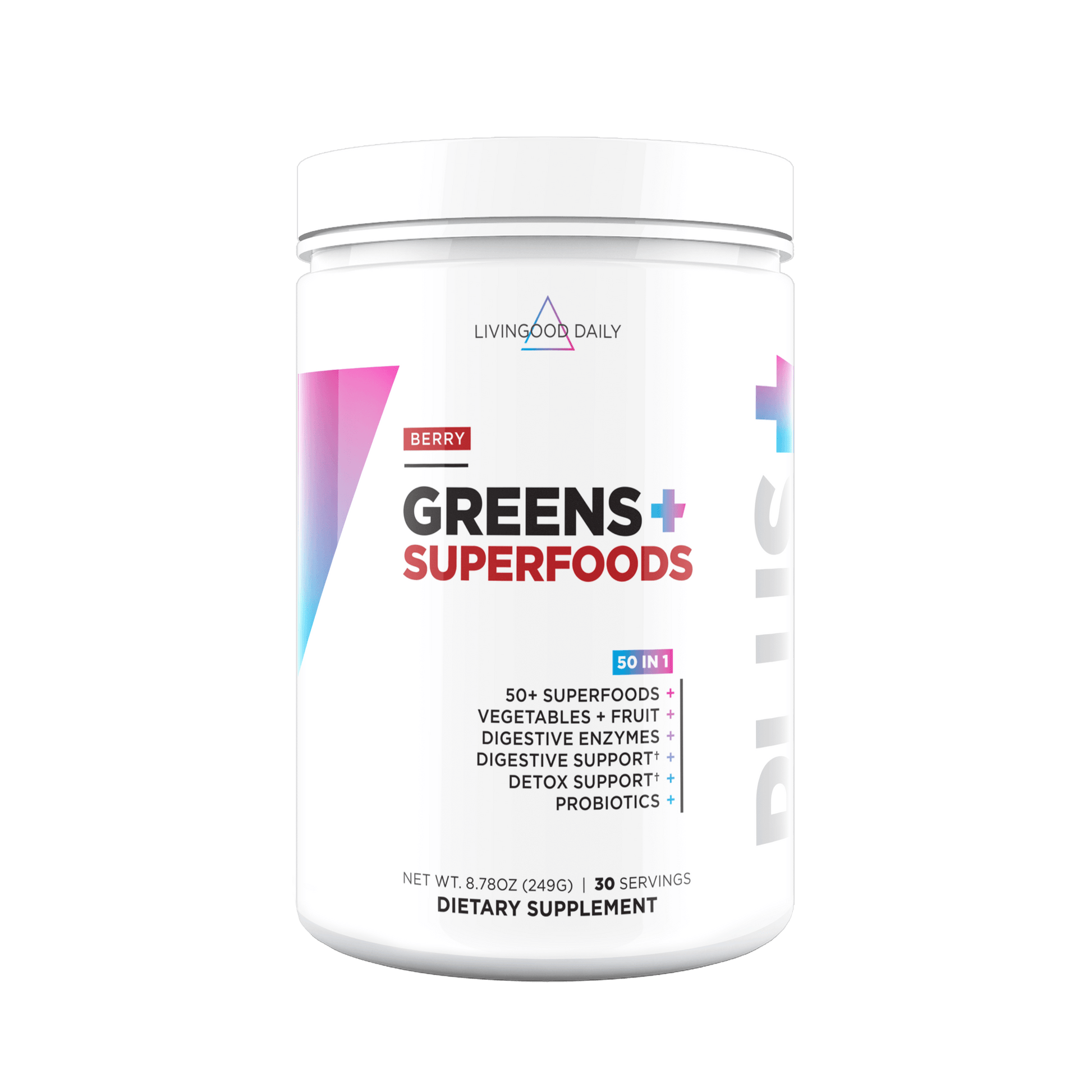 Fuel your body and satisfy your taste buds with every scoop. Livingood Daily Greens + Superfoods (Berry) blends over 50 nutrient-dense superfoods into a delicious, fruity drink that helps you feel refreshed, focused, and ready to take on the day. This daily formula brings together greens, antioxidant-packed fruits, fiber, probiotics, and enzymes to help your body reset and thrive—without any added sugar, synthetic fillers, or crash.†