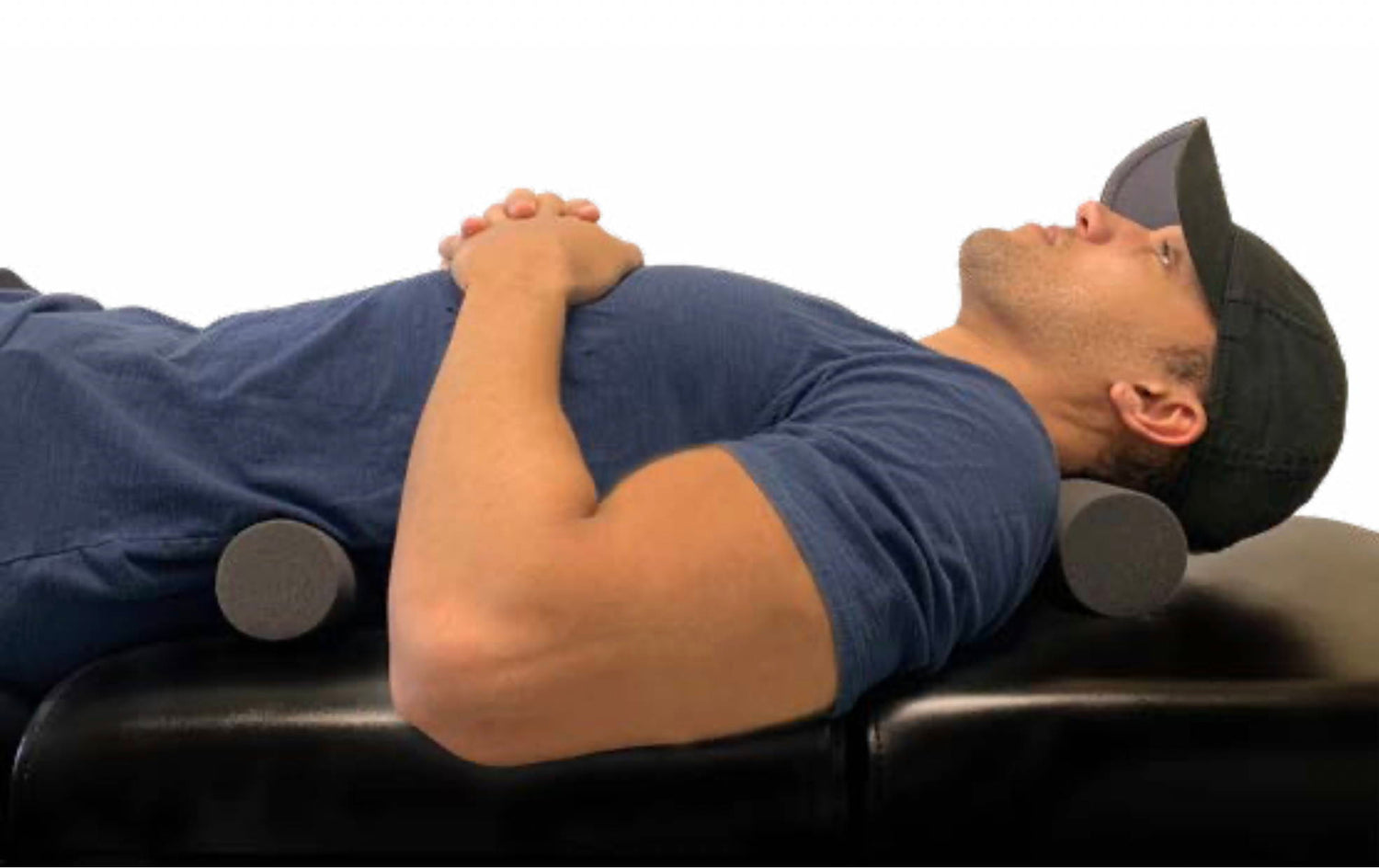 - Place the roll in the appropriate position (larger roll middle of your neck and the smaller roll middle of your low back).